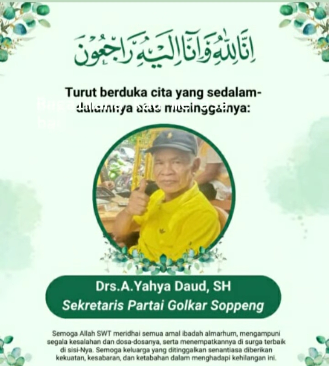 Soppeng–wartasimpul.com. Inna lillahi wa inna ilaihi raji’un. Kabar duka menyelimuti keluarga besar Partai Golongan Karya (Golkar) Kabupaten Soppeng. Sekretaris DPD II Partai Golkar Kabupaten Soppeng, Drs. Yahya Daud SH, telah berpulang ke Rahmatullah pada hari Kamis, 12 Februari 2026.