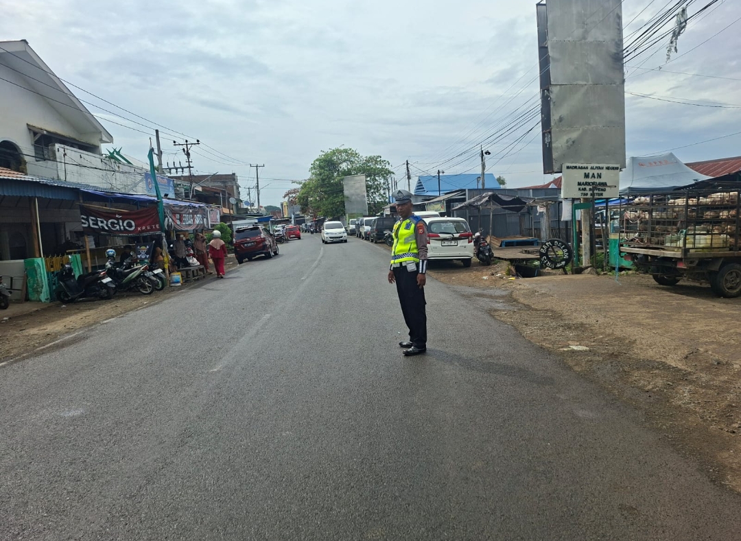 SOPPENG, Wartasimpul – Dalam rangka menyambut Hari Raya Idul Fitri 1447 H, Satuan Lalu Lintas Polres Soppeng melaksanakan kegiatan pengaturan lalu lintas (gatur lalin) di sejumlah titik pasar tumpah dalam wilayah hukumnya pada Kamis (19/3/2026).