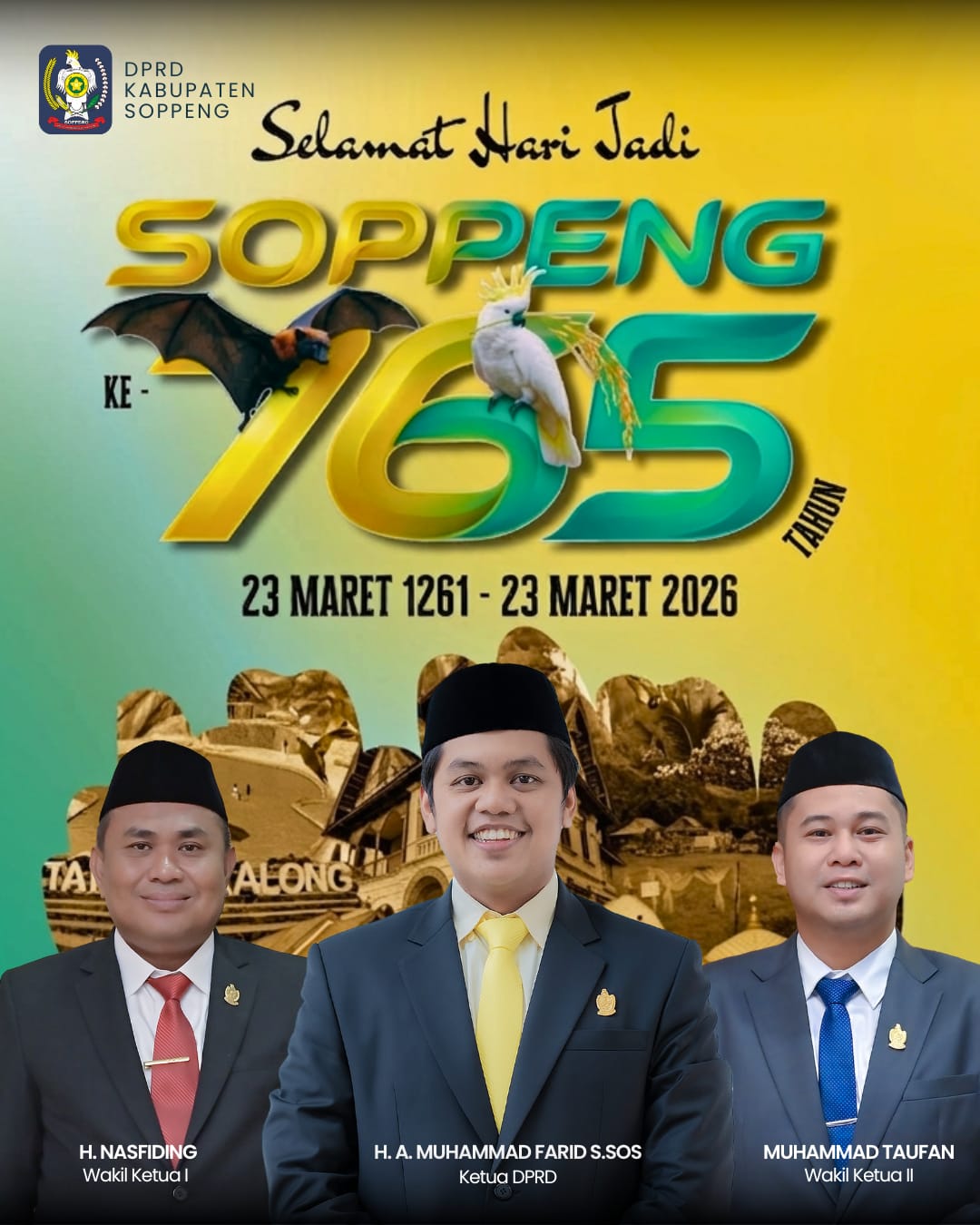 Segenap PPimpinan dan staff DPRD kabupaten Soppeng mengucapkan selamat Hari Jadi Soppeng Ke 765