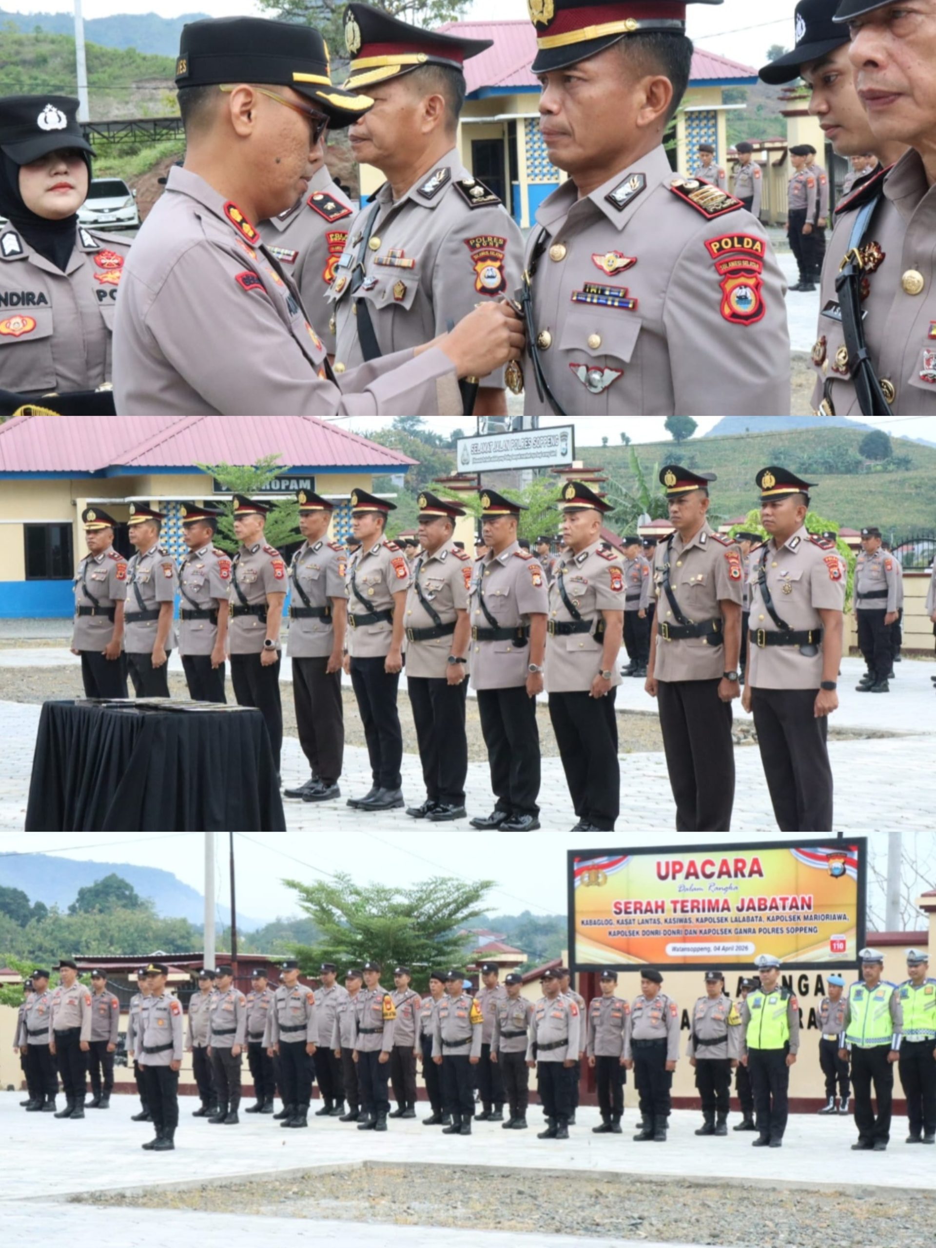 SOPPENG, Wartasimpul.com – Polres Soppeng melaksanakan Upacara Serah Terima Jabatan (Sertijab) yang dirangkaikan dengan kegiatan kenal pamit pejabat lama dan pejabat baru. Kegiatan berlangsung khidmat di halaman Markas Polres Soppeng, pada Sabtu (4/4/2026), mulai pukul 07.30 WITA.
