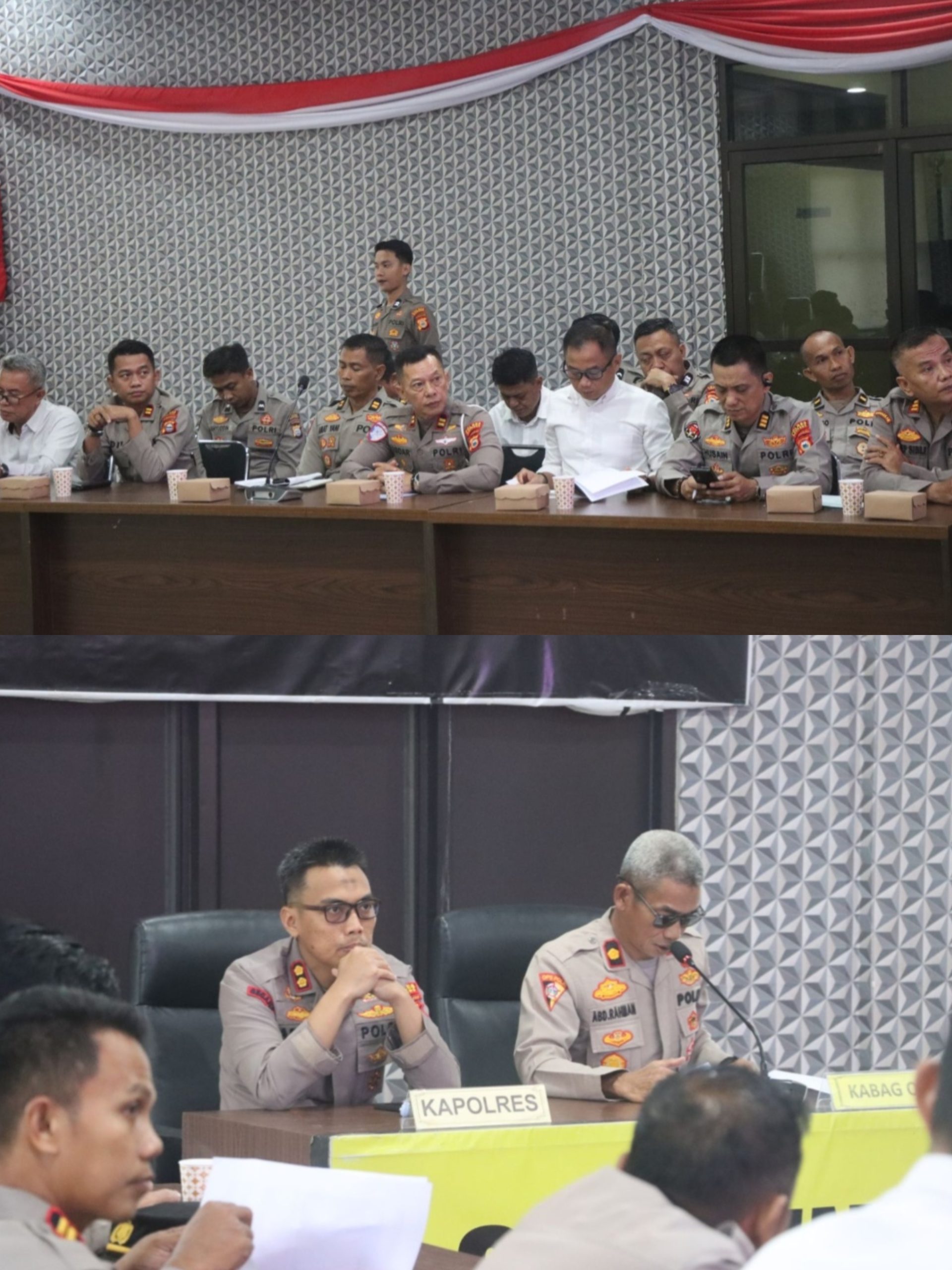 Kegiatan penting ini dipimpin langsung oleh Kapolres Soppeng AKBP Aditya Pradana, S.I.K., M.I.K., dan dihadiri oleh seluruh Pejabat Utama (PJU) serta para Kapolsek jajaran Polres Soppeng.